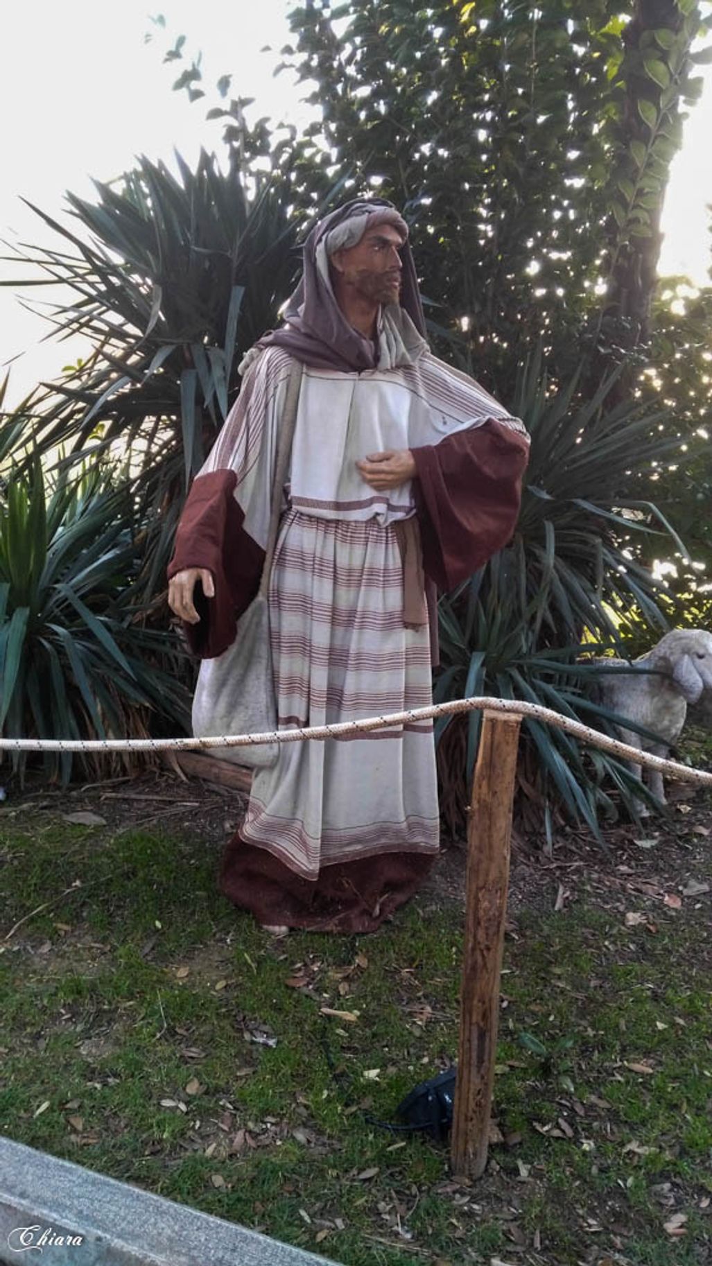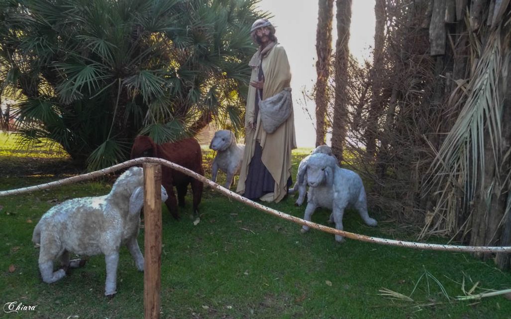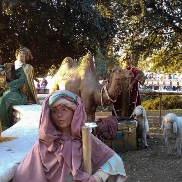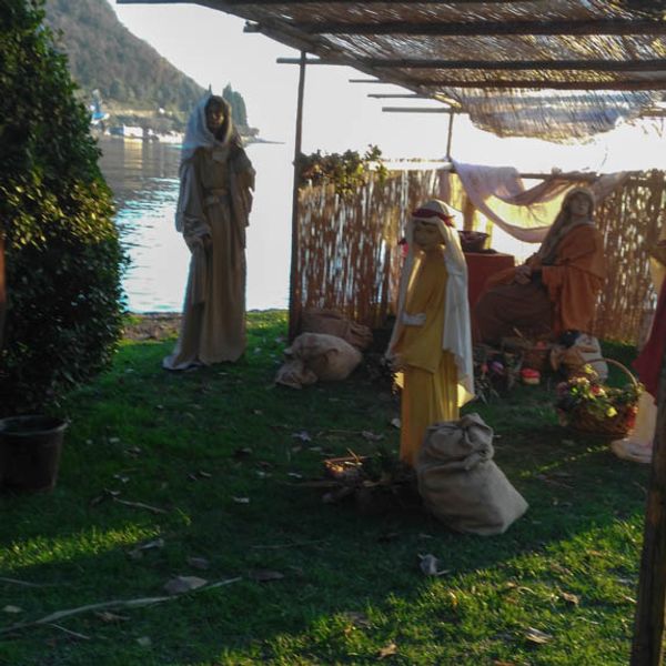 A Garda, con sullo sfondo l'omonimo lago, un presepe con le statue a grandezza naturale, suggestiva ambientazione.