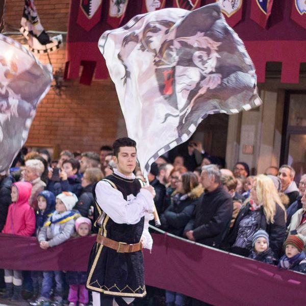 Come tutti gli anni il sabato sera prima del Palio dei Somari, a Torrita di Siena, la gara a coppie tra sbandieratori e tamburini, uno spettacolo di bandiere e tamburi imperdibile.