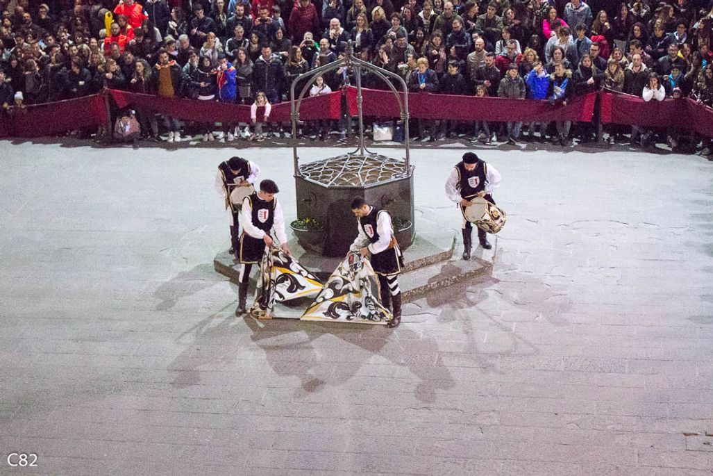 A torrita di Siena: la gara tra gli sbandieratori ed i tamburini del palio dei somari