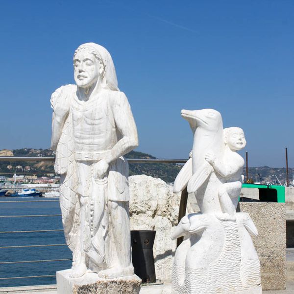 San Benedetto del Tronto(AP) - riviera delle palme: il lungo mare con le famose palme, il centro storico ed il pontile sud con il Museo d'arte sul mare, molti degli scogli che costeggiano il pontile sono scolpiti da vari artisti.